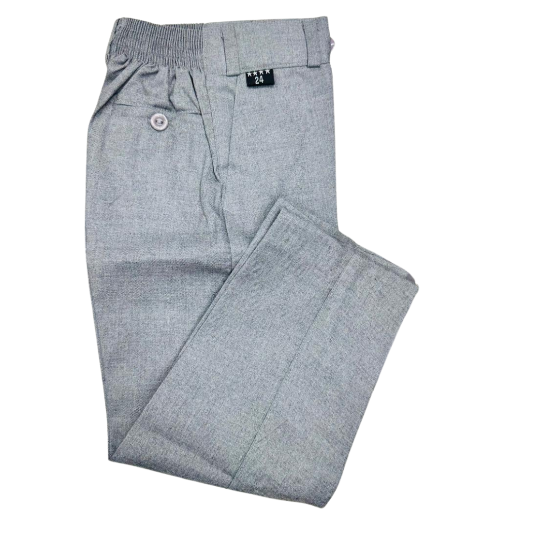 Ideal for school uniforms or casual wear, the Silver Grey Pant with an elastic waistband offers a comfortable, practical solution for students on the move.